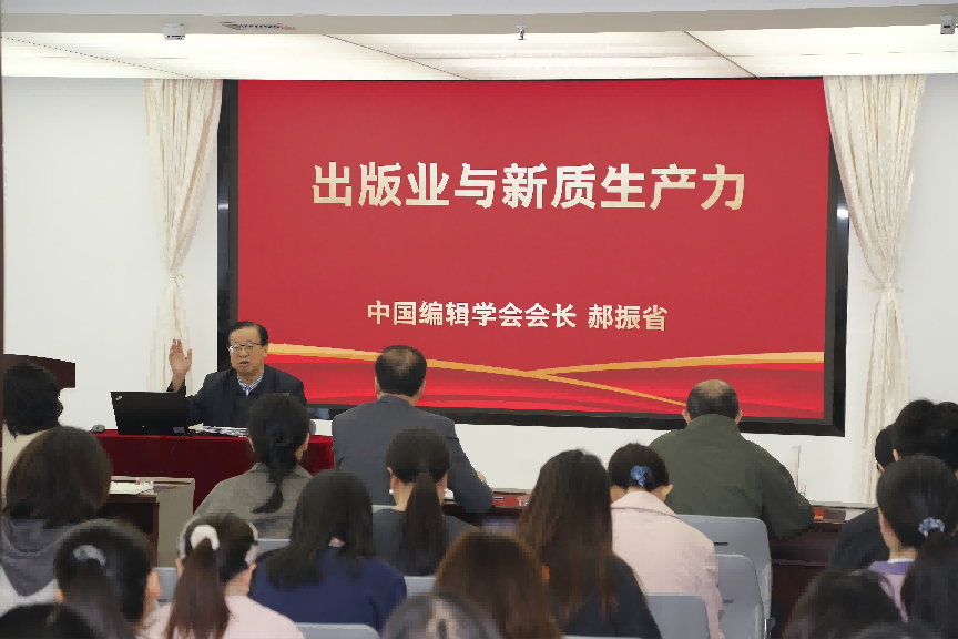 郝振省会长以“新质生产力与出版业的双向赋能”为核心,从三个维度展开阐述。他指出,新质生产力是技术革命性突破、生产要素创新性配置、产业深度转型升级催生的先进生产力,其核心特征为高科技、高效能、高质量,并强调需摆脱传统经济增长方式与发展路径。在出版业赋能新质生产力方面,郝振省认为出版业本质是知识生产与传承的核心载体,需通过学术阐释、大众化传播,推动新质生产力理念深入人心。针对新质生产力如何赋能出版业,他强调人工智能、大数据等技术已深度融入选题策划、作者挖掘、编辑校对、图书发行等全流程,极大地推动了“融合编辑”“融合出版”“融合阅读”“融合发展”实践。关于辩证看待技术与传统的关系,郝振省指出,生成式AI尚处初级阶段,无法替代编辑的“高级思维能力”。传统出版在系统知识积累、价值观塑造等方面不可替代,需坚持“人机协同、以人为主”。他引用马克思主义出版观,强调编辑需具备“文学的感性、史学的智性、哲学的悟性、艺术的灵性、伦理的德性、科学的理性”六大素养,对编辑的发展提出了殷切期望。
