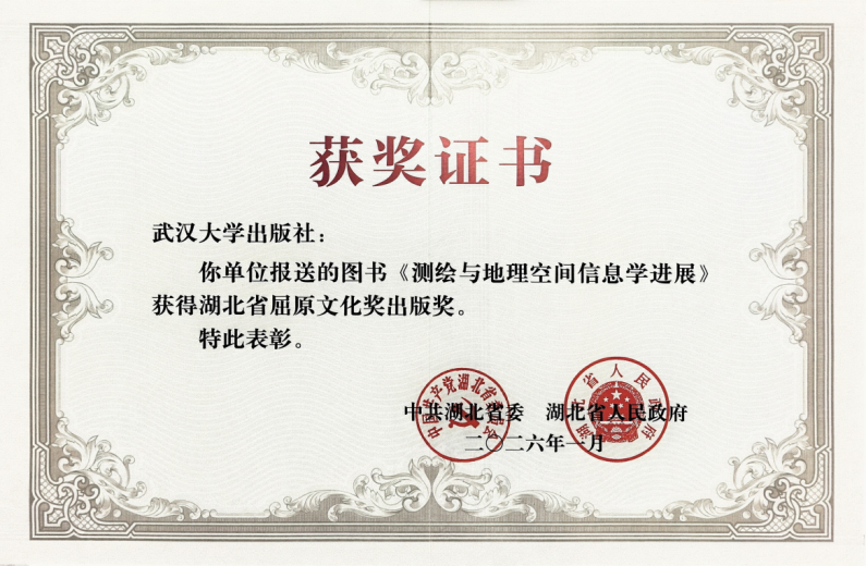 近日,湖北省屈原文化奖获奖名单公布,我社《国家豁免法》《测绘与地理空间信息学进展》获出版图书奖,副社长、副总编辑林莉获出版个人奖。