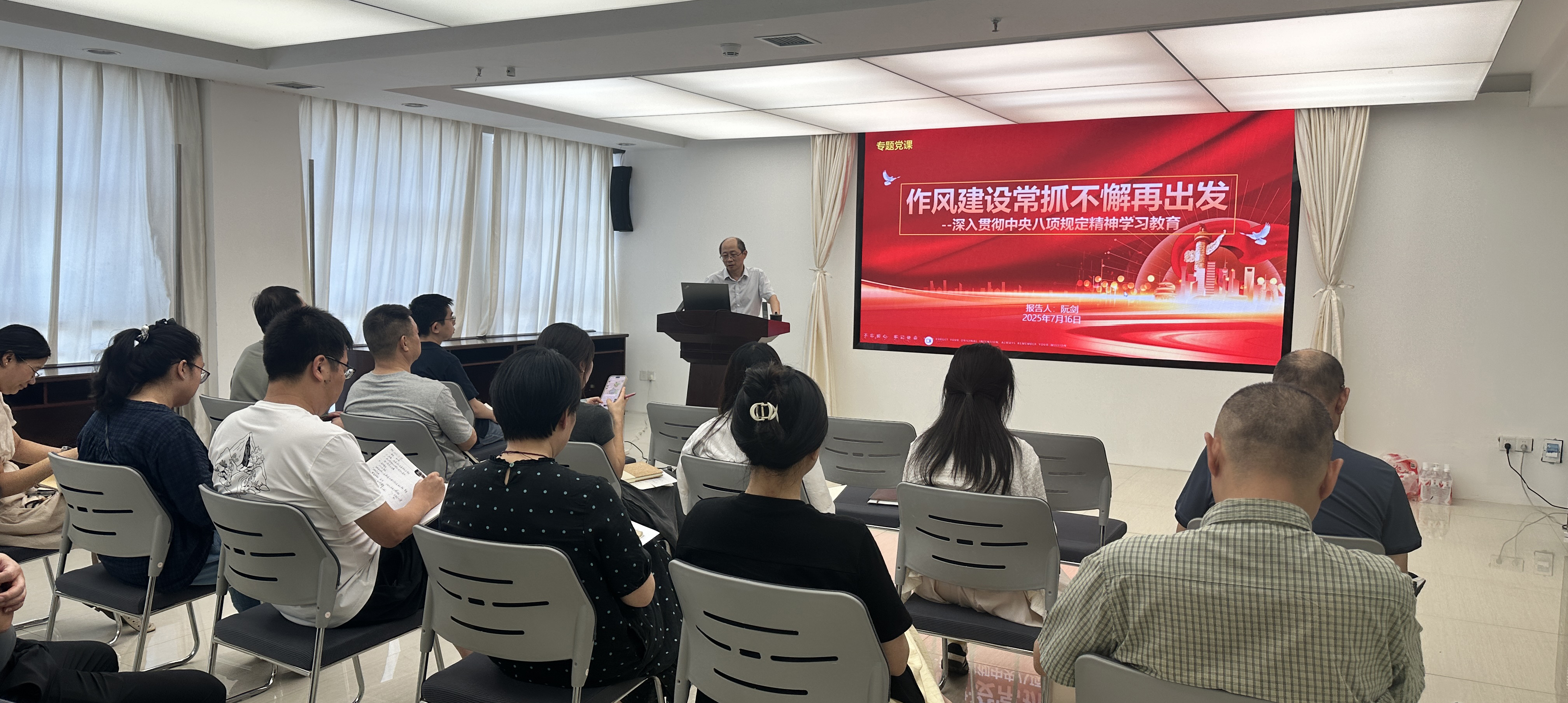 副社长阮剑同志以《作风建设常抓不懈——深入贯彻中央八项规定精神学习教育》为题讲授专题党课,围绕新时代制定中央八项规定的背景、“四风”问题的表现形式与根源、财务“红线”警示案例,以及如何以“三严”要求持续深化纠治“四风”等内容进行深入解读,并强调要把过紧日子作为长期坚持的原则,推动作风建设向纵深发展。
